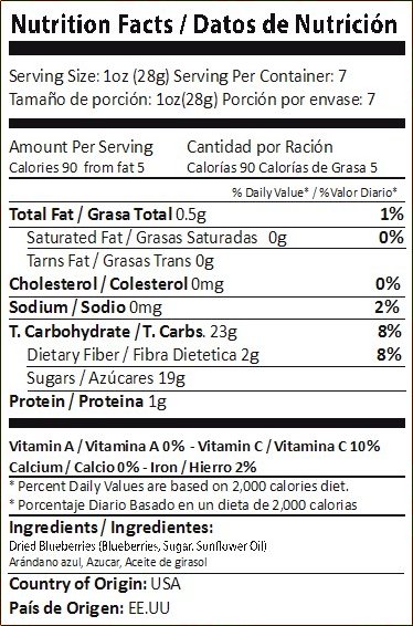 Los Blueberries deshidratados, también conocidos como arándanos azules, son una excelente fuente de antioxidantes naturales, fibra y compuestos antiinflamatorios. Su sabor único —una mezcla equilibrada entre dulce y ácido— los convierte en una opción deliciosa y nutritiva para consumir solos, mezclar con granola o yogur, o incorporar en recetas de repostería como muffins y galletas.