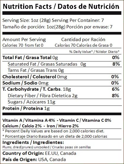 Disponibles en presentaciones de 7 onzas y 1 libra, nuestras ciruelas pasas son una excelente opción para quienes buscan un alimento natural, funcional y delicioso para su día a día.