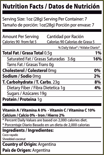 El Coco Rallado Natural es perfecto para darle un toque tropical a tus postres, batidos y platos salados. Sin azúcar añadida ni conservantes, mantiene su textura suave y su sabor auténtico.