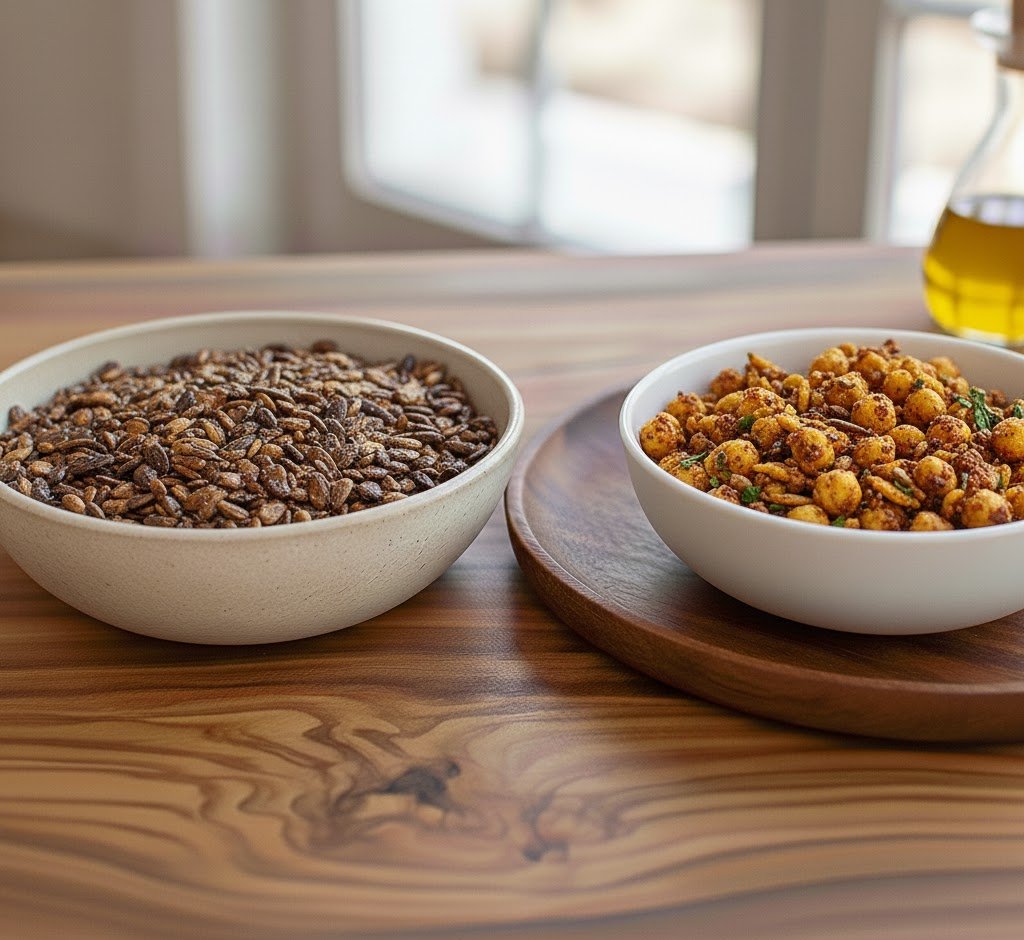 Mix salado: Combina 2 oz de semillas tostadas con garbanzos tostados y especias.